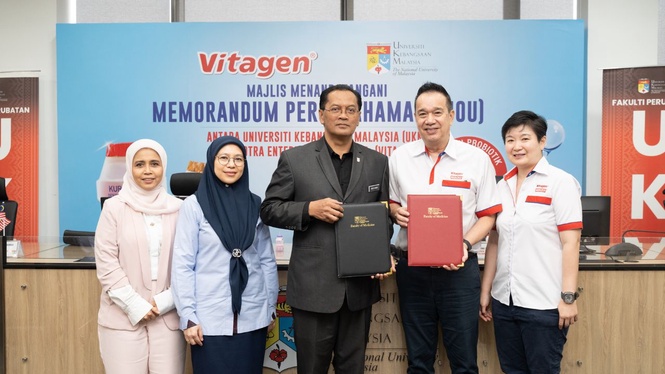 大马第一乳酸菌饮料品牌维他精(VITAGEN)荣誉宣布与国立大学(UKM)签署谅解备忘录(MoU),共同建立突破性的策略合作伙伴关系。根据这项策略联盟,维他精正式委任肠胃病学研究及基因组医学先驱Norfilza Mohd Mokhtar教授为医药学术顾问。此次合作不仅将强化VITAGEN与国立大学的关系,还将为大马的肠道健康研究与公共卫生倡导树立全新标杆。