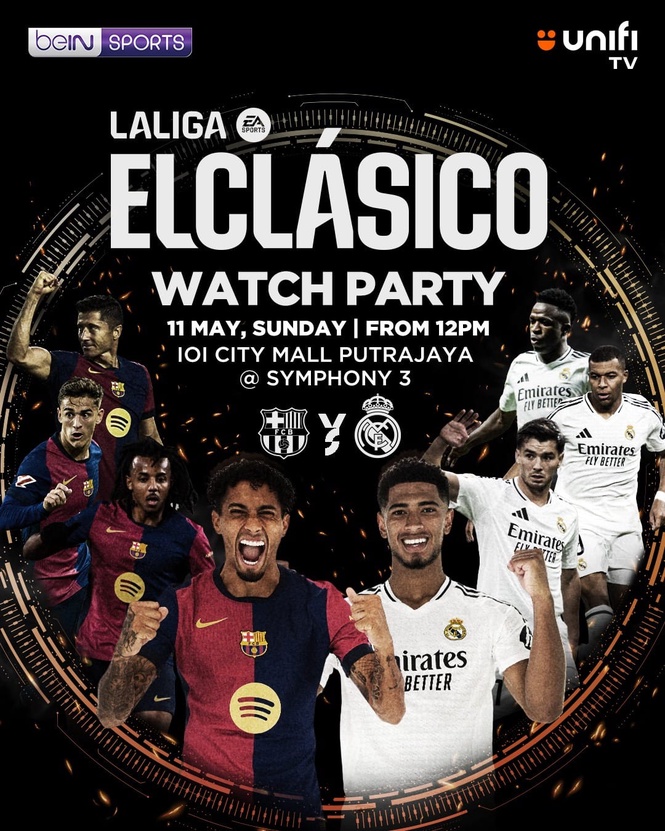 Kuala Lumpur, 8 May — Football fans, get ready for Spain’s biggest showdown and one of the most iconic rivalries in world football — ELCLASICO! This 11 May, join beIN SPORTS, LALIGA and Unifi TV at IOI City Mall for a special ELCLASICO Screening Party featuring none other than LALIGA legend Claude Makélélé.