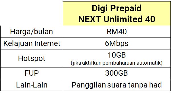 Bergerak daripada cerita Celcom, di Digi pula, berbeza sungguh landskapnya. Telco kuning cuma ada 1 pelan prabayar tanpa had dan mujurlah ia ditawarkan pada harga bawah RM50. Kalau tak, tidaklah mereka masuki senarai ini.