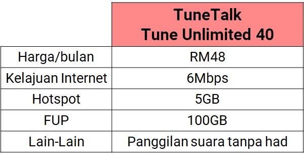 MVNO terkenal dalam senarai ini juga ada tawarkan pelan yang memenuhi kriteria yang kami tetapkan. Pelan Tune Unlimited 48 boleh anda langgan pada harga RM48/bulan.