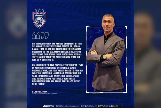 JDT chief executive officer (CEO) Luis Garcia said he was intrigued by a statement from Selangor FC chief executive officer Dr Johan Kamal Hamidon, who claimed to have the best formula to address the financial challenges affecting local football.