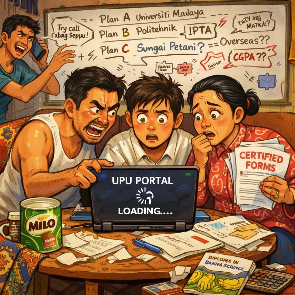 Parents, meanwhile, transform into part-time conspiracy theorists and full-time IT support. “Why can’t I click submit?!” shouts Dad, aggressively stabbing the refresh button like it insulted his 'Nasi Lemak'. The UPU website, bless its soul, has the bandwidth of a 2003 dial-up modem and the temperament of a cat. It crashes if more than 12 people breathe near it. So the national pastime becomes communal refreshing at 3 a.m., because apparently servers sleep too.