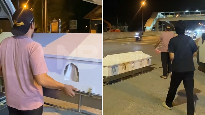 Menerusi satu hantaran tular di media sosial, kumpulan remaja tersebut dilihat mengeluarkan sebuah keranda putih dari sebuah van jenazah sebelum meletakkannya di bahu jalan.