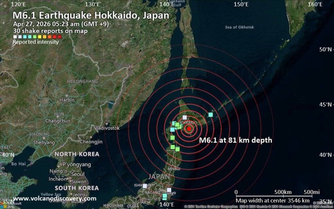 According to the Japan Meteorological Agency (JMA), the quake occurred shortly before 5:30am(Japan Timet) at a depth of 83 kilometres. It registered an upper 5 on Japan’s seismic intensity scale in Urahoro and a lower 5 in Niikappu, indicating strong shaking in parts of the island.