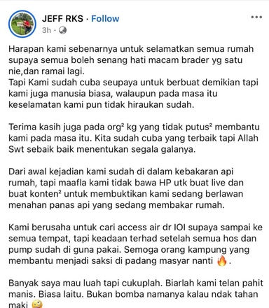 Sebelum ini, tular mengenai anggota bomba yang dicemuh dan dianggap tidak berguna ketika sedang memadam kebakaran besar di Kampung Bahagia, Sandakan. Malah, ada individu yang menjerit meminta mereka beredar walaupun pasukan penyelamat sedang bertarung dengan api yang marak. Advertisement “Kami tak perlu pujian, cukuplah dapat jalankan tugas” T