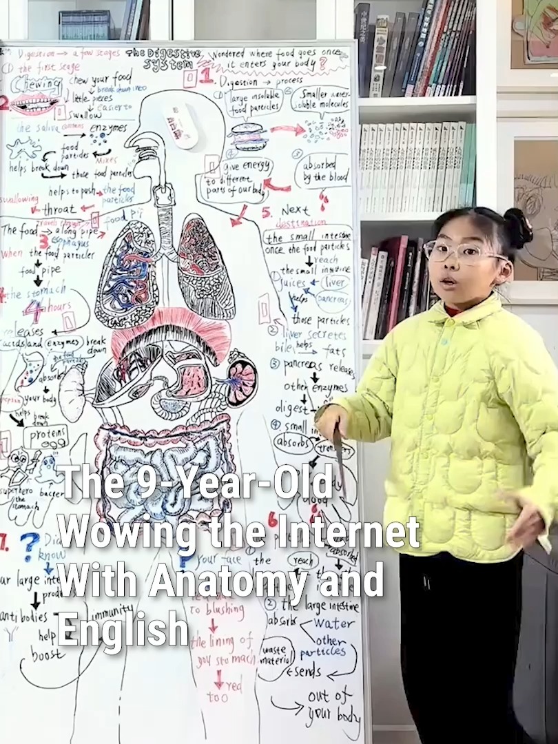 A girl in Hangzhou, Zhejiang province, is gaining attention online for her detailed anatomical drawings and English explanations.