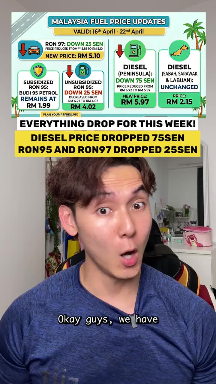 Diesel prices dropped 75sen! RON95 and RON97 dropped 25sen! #breakingnews #malaysianews