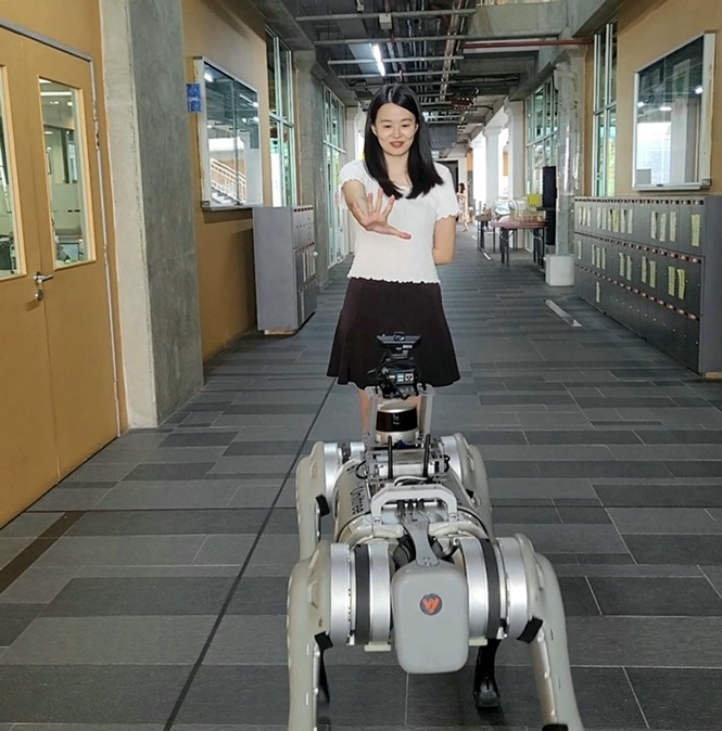 Exploring the future of robotics at Taylor's University! Testing a gesture control system on a four-legged robot, also known as the Legged robot or simply RobotDog. (Video credit: Julian KP Tan)