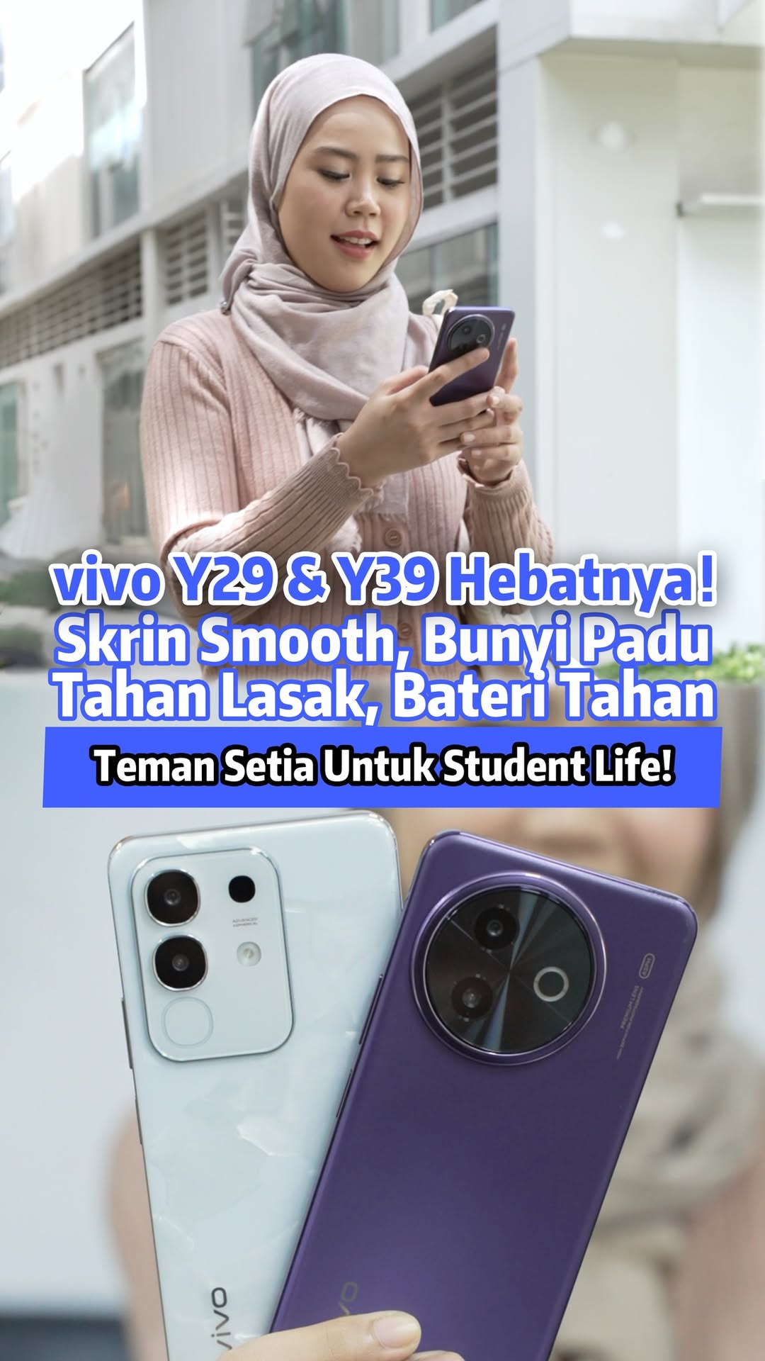 Dengan vivo Y29 & vivo Y39, korang boleh fokus pada apa yang penting—kelas, assignment, dan juga me-time tanpa gangguan! Tak perlu risau bateri cepat habis, bunyi tak jelas, atau skrin kecil yang tak puas hati.